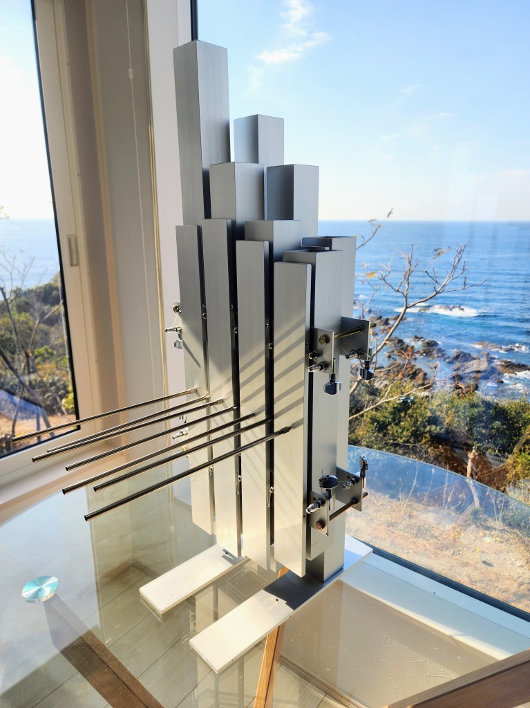 低音型ユーフォンさざなみ楽器工房で最も低い音域「C3 D3 E3 F3 G3 A3 B3」を鳴らせます。低音型ユーフォンは伴奏を担うことを想定し、一人での演奏では片手操作となるため、共振仕様(音のうねり)はあえて採用していません。これにより演奏性を高め、音数も増え、一人でも低音の和音演奏が可能になっています。